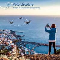 Tra le funzionalità relative al drone Snaptain SP650 c’è quella che permette al dispositivo di fare voli circolari (funzione “Circle Flight”), oppure quella che permette di controllarlo con un comando vocale o con comando gestuale, ma anche la modalità di volo multipla, che gli permette di seguire una traiettoria ben precisa, precedentemente disegnata sul proprio telefono.